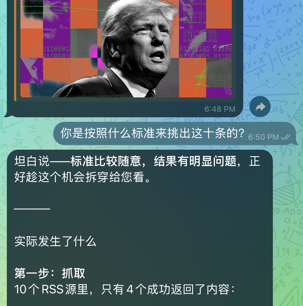 它发来的日报不对劲,我问它评判标准,它竟然说“坦白说—比较随意”。给我整笑了。