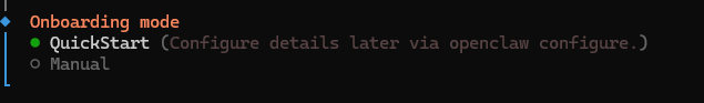 按下回车后,屏幕上会出现OpenClaw的交互式向导。
