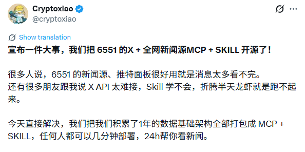 OpenNews-MCP:集成 50+ 实时新闻源(甚至包含链上数据)。它不再是“搜新闻”,而是“接新闻电报”,速度极快,且数据是结构化好的。OpenTwitter-MCP:解决了最头疼的 X API 问题。龙虾可以直接搜索 X 上的实时讨论,分析某个 AI 大佬又发了什么推。